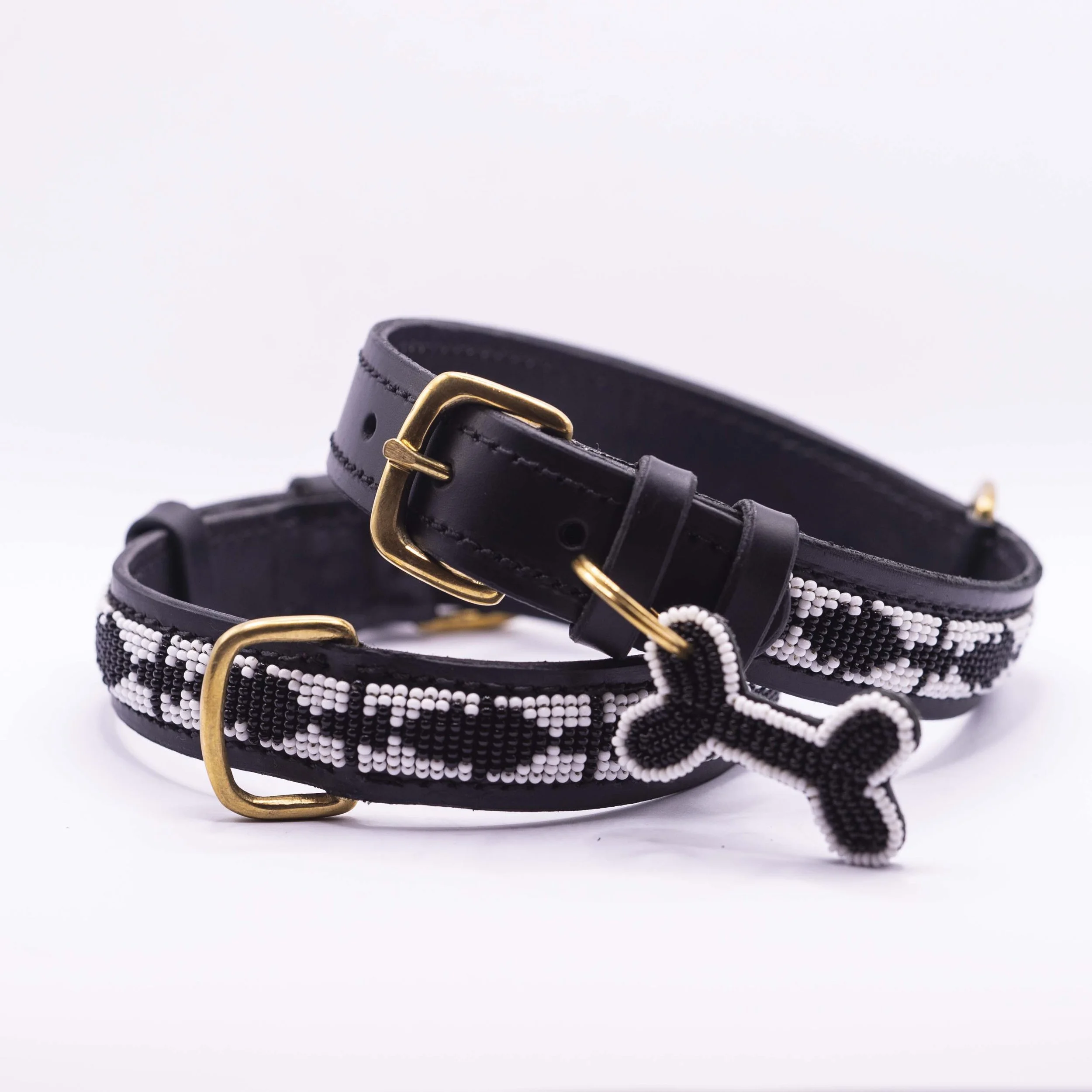 All of our beaded leather dog collars are made in Kenya by local artisans. We offer a variety of designs, colours, and sizes to cater to every breed and personality. And finally all of our leather dog collars are modelled by rescue dogs in collaboration with TNR, who rescues dogs from all over Kenya and helps them to find better homes.